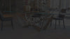 The Corso Como dining room collection, a laser finish complements the Canaletto walnut, creating a decorative motif.
