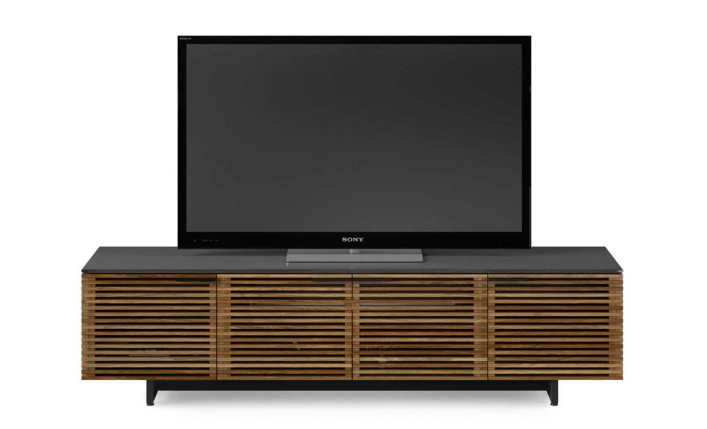 Designed with the home theater in mind—yet beautifully crafted furniture in its own right—the award-winning Corridor collection is the star of any living space. Louvered hardwood doors conceal a host of user-friendly features, sharply contrasted with a satin-etched glass top and black steel base.