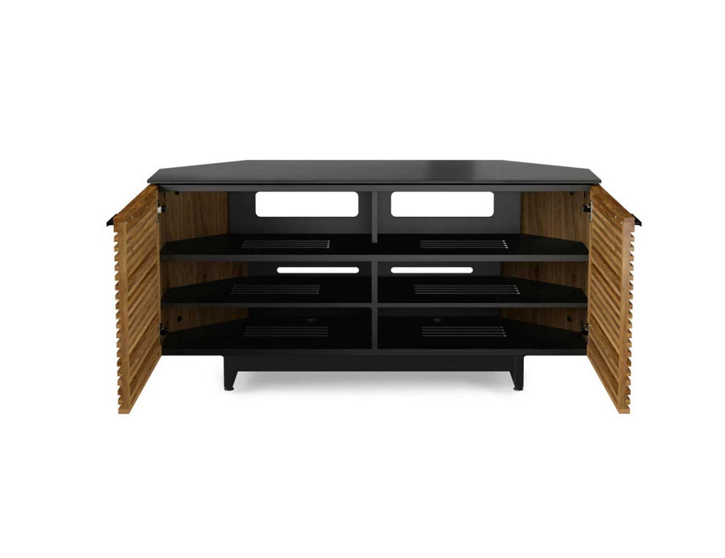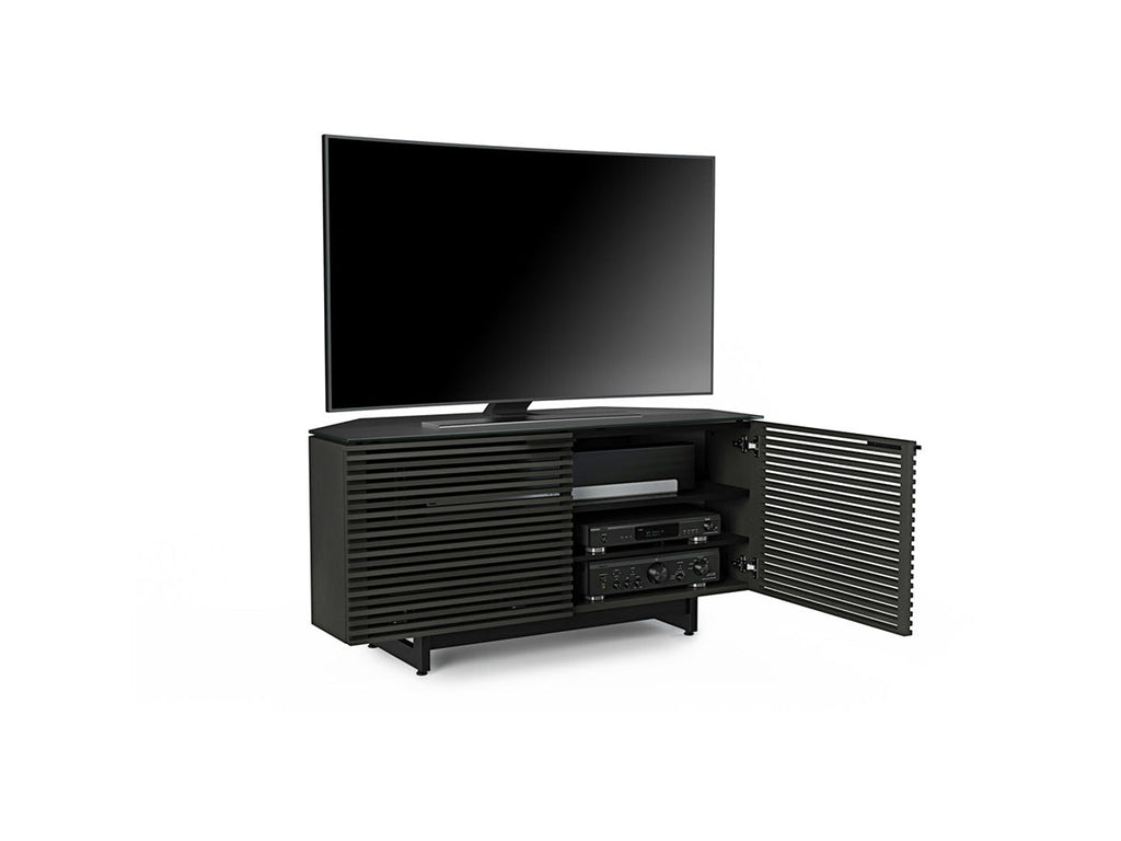 Designed with the home theater in mind—yet beautifully crafted furniture in its own right—the award-winning Corridor collection is the star of any living space. Louvered hardwood doors conceal a host of user-friendly features, sharply contrasted with a satin-etched glass top and black steel base.