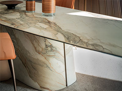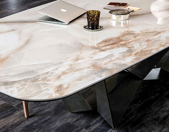 Contemporary ceramic dining tables offering exceptional durability and refined design.