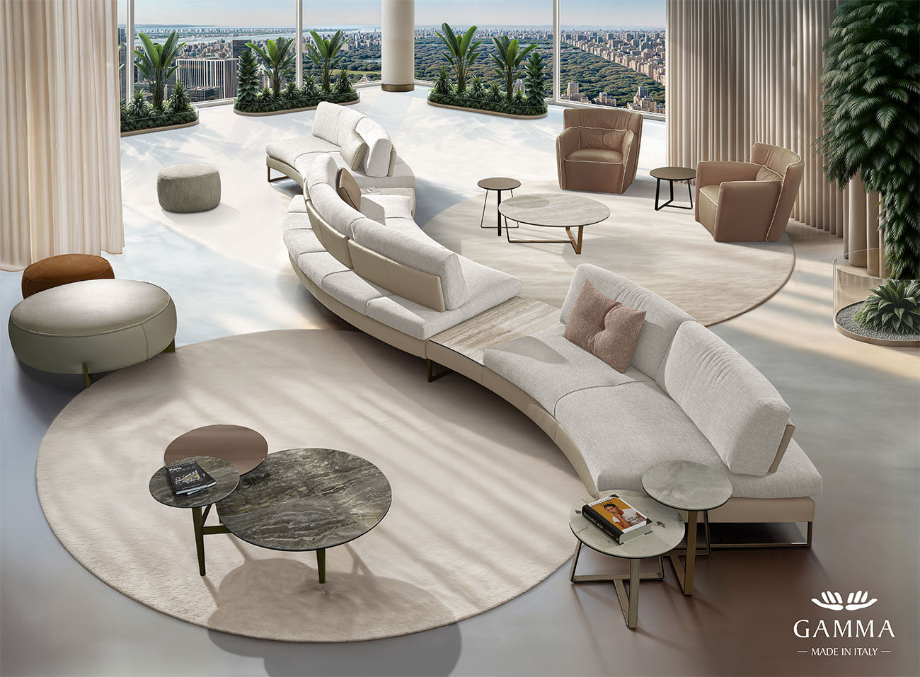 The Sunset Round sofa by Gamma is a striking fusion of contemporary design, advanced modular engineering, and exceptional comfort. Created to meet the demands of modern living as well as upscale hospitality spaces, this sophisticated seating system offers both aesthetic impact and functional versatility.