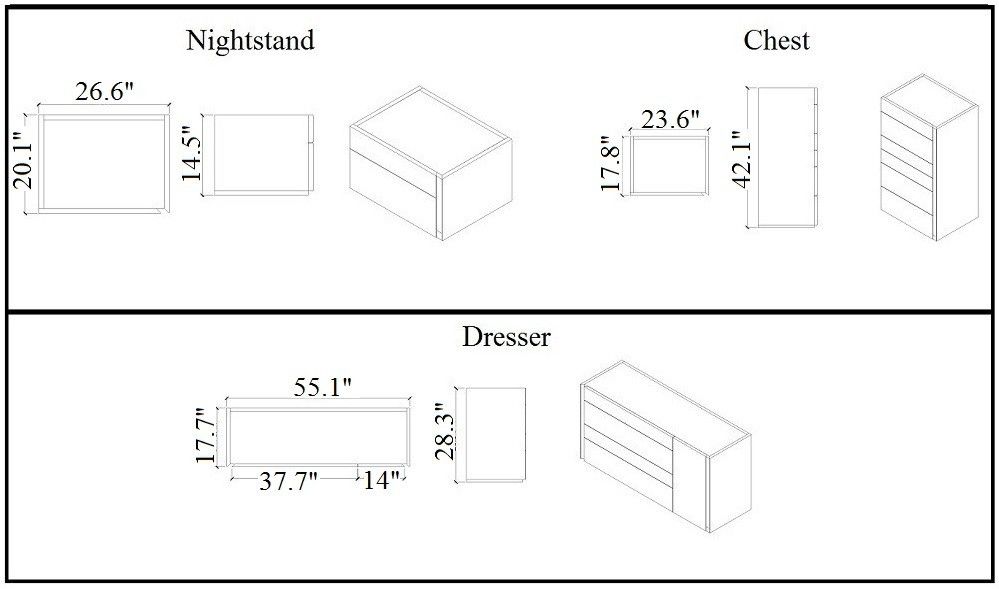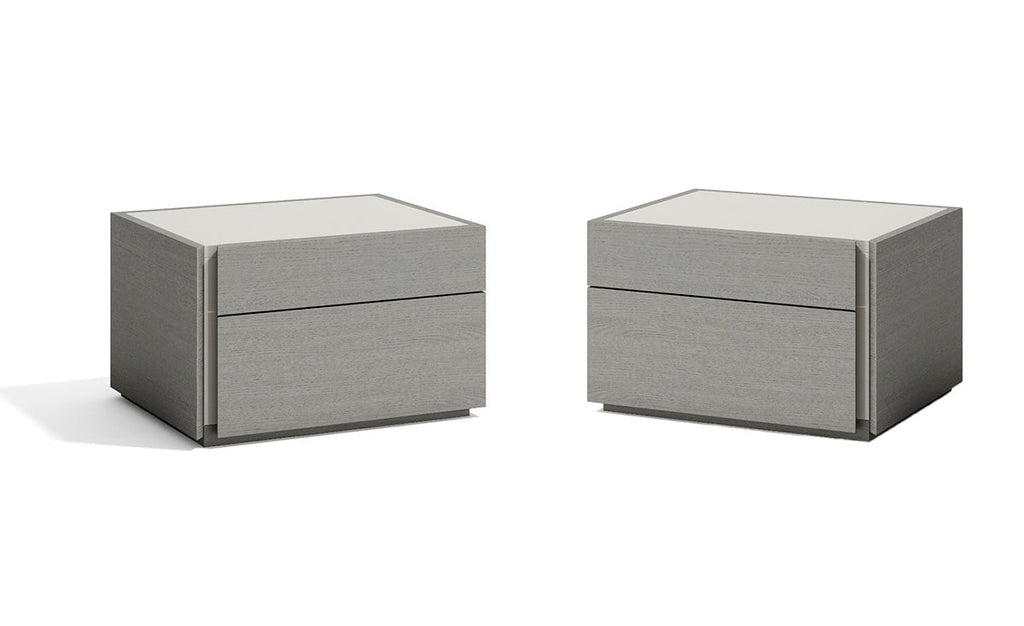 The Porto premium bedroom features an elegant design beautifully mixing a natural light grey lacquer finish which looks striking against the natural grey wood veneer. The interplay of grey with light grey continues in the nightstands, chest, and dresser. As with all of J&M's premium collection bedrooms the case goods come equipped with soft closing tracks by Blum, a world-renowned German manufacturer that sets the standards for the finest quality furniture hardware.