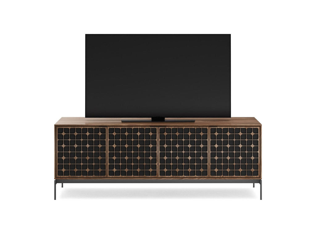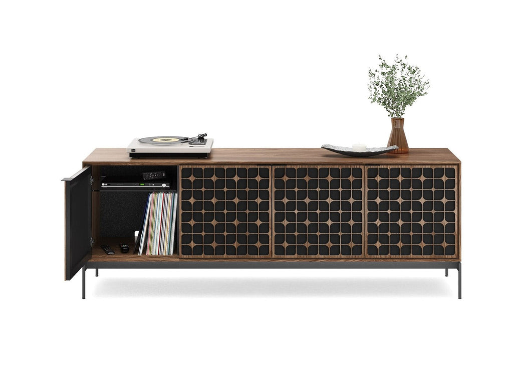 Behind Elements' CONSTELLATION doors, adjustable shelves and spacious interiors offer versatile storage solutions, perfect for both media components and everyday essentials. The celestial pattern not only enhances the cabinet's design but it is also engineered for acoustic transparency, ensuring flawless performance for enclosed speakers and sound bars, all while keeping your belongings beautifully organized.