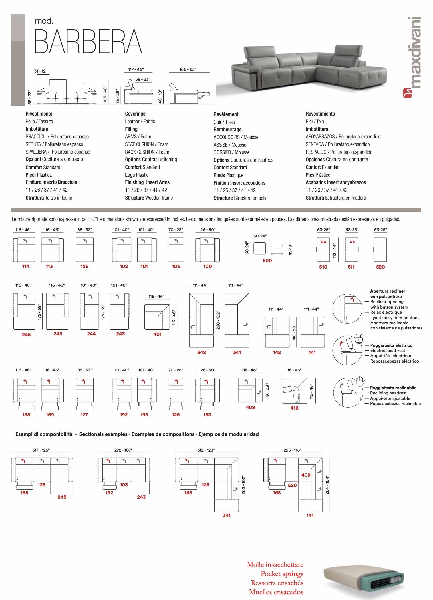 Large angular sofa with a peninsula and pure-white leather upholstery, the Barbera sectional is the perfect meeting point between design, comfort, and attention to detail.