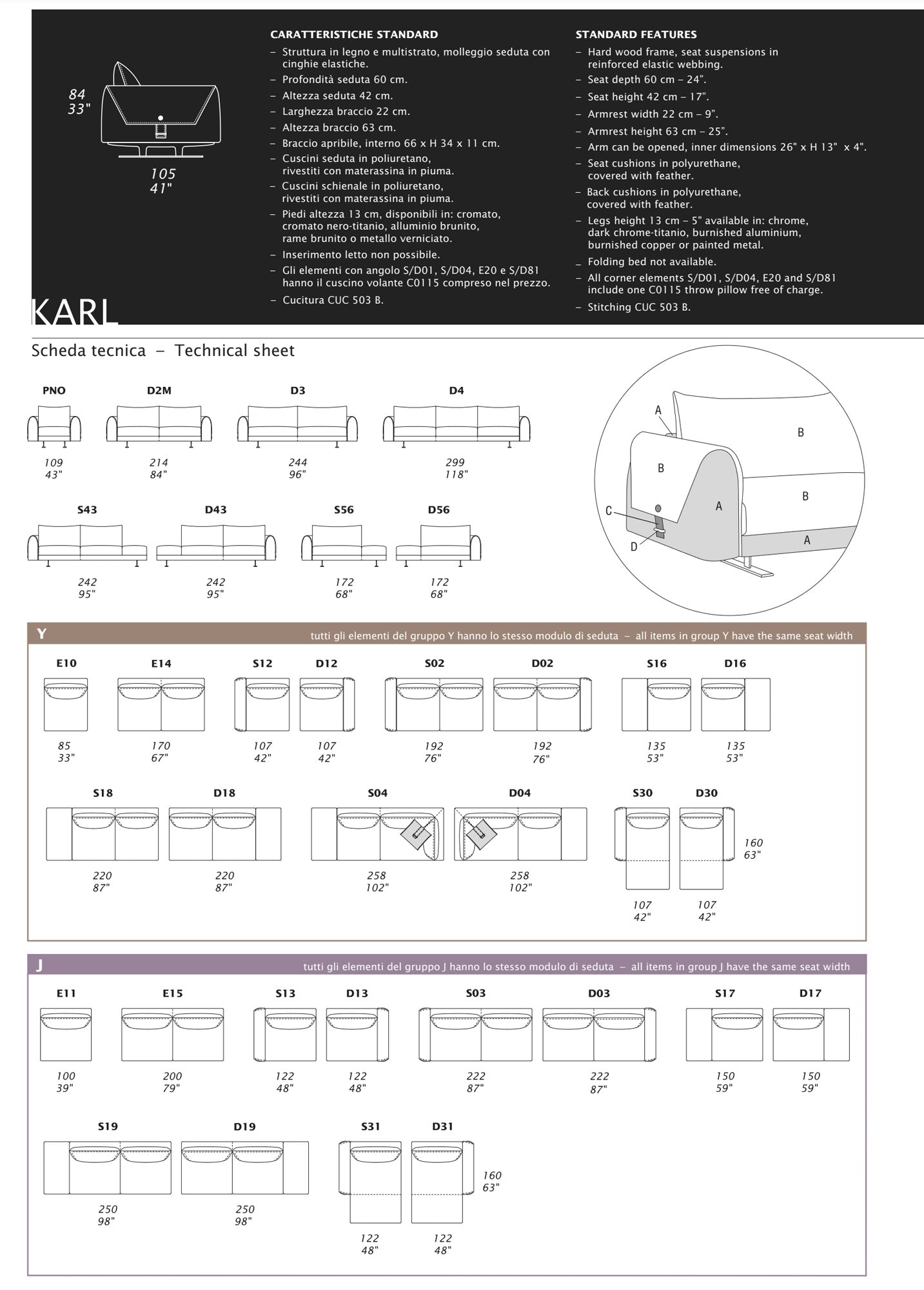 - Seat & back cushions in polyurethane.