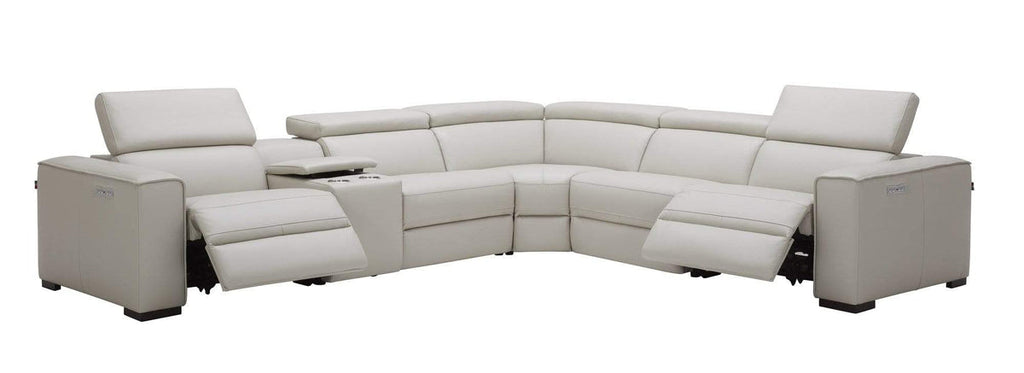 Visually Clean Lines and spacious seats set the Picasso apart from the standard. This iconic sectional features 3 powered recliners and headrests for maximum comfort. Crafted from Premium Top-grain Leather all around, this 6 piece sectional features a convenient console with two cup holders plus storage, 2 corner-end recliners, 1 armless recliner, 1 stationary armless & a plush corner cushion for ultra comfort, and a solid oak frame to ensure long-lasting use. Available in caramel, dark grey & silver grey.
