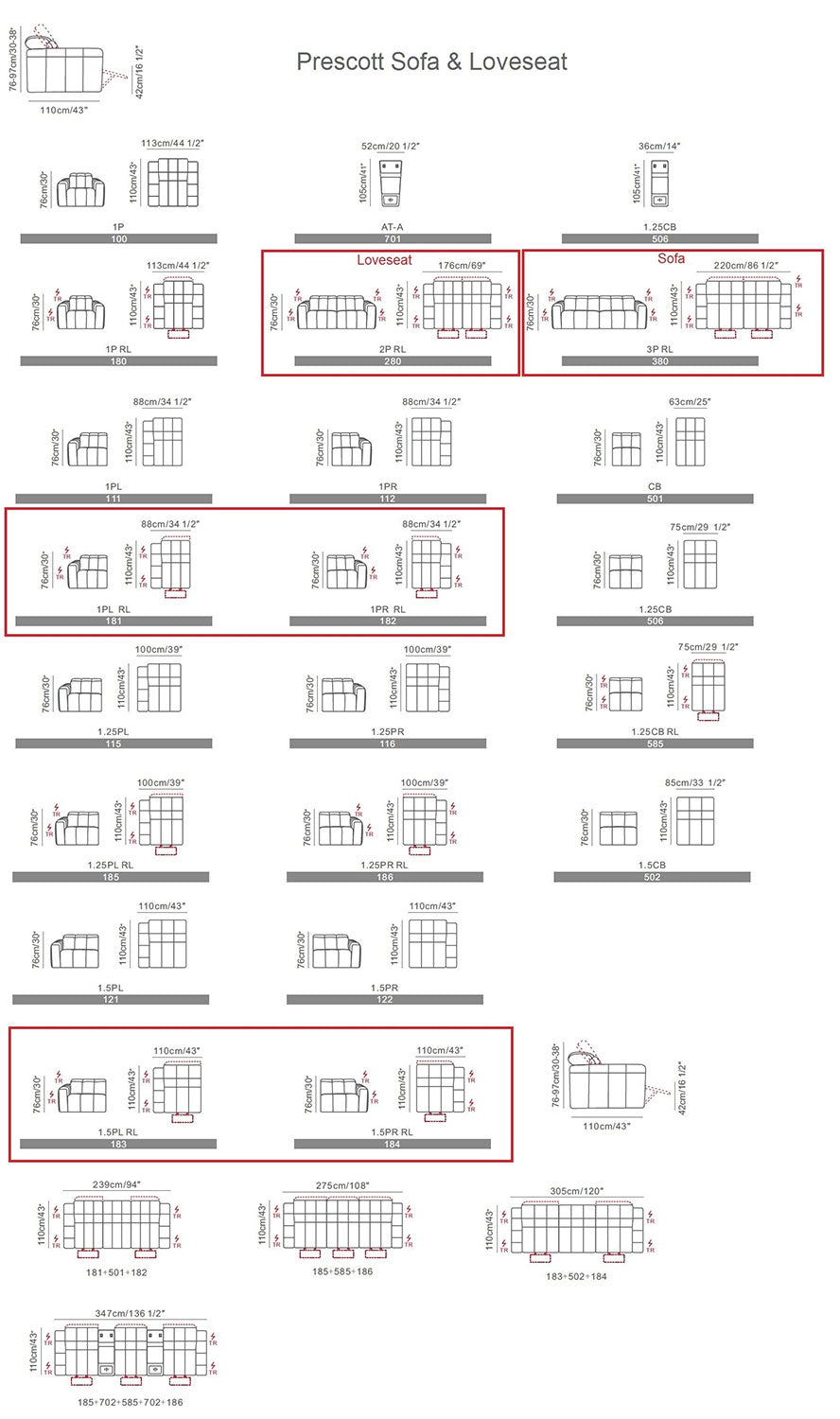 | Loveseat | 69" W x 43" D x 30"-38" H |