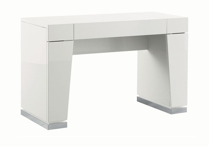 The Canova Vanity is part of the Canova bedroom collection by Alf Italia, which features a stunning white gloss lacquer finish.  The Canova Vanity is truly gorgeous and emphasizes modern design. This vanity features an elegant White High Gloss finish and Chrome accents. The smooth-opening vanity includes a mirror on the inside with space to keep makeup. This piece was made in Italy.