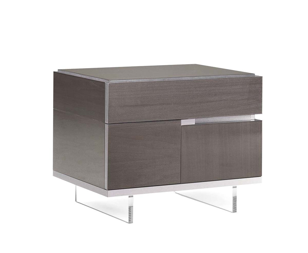 Made of real wood veneer and covered with High Gloss lacquer, the furniture lasts long and looks really amazing. The Athena collection features an acrylic base. There is also a complete set of case goods: nightstands, dresser, mirror, chest, gorgeous vanity table, and wardrobes in different sizes. All pieces can be sold separately, but for sure, the most stunning look can be achieved only when you furnish your sleeping area with a complete Athena Bedroom Set..