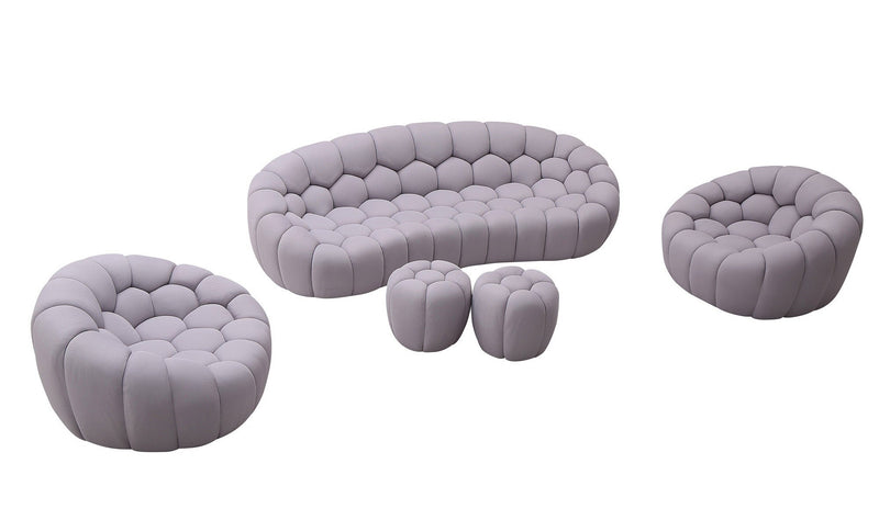 This extraordinary ottoman boasts a distinctive silhouette, featuring a rounded, bubble-like shape that invites you to relax in its embrace.