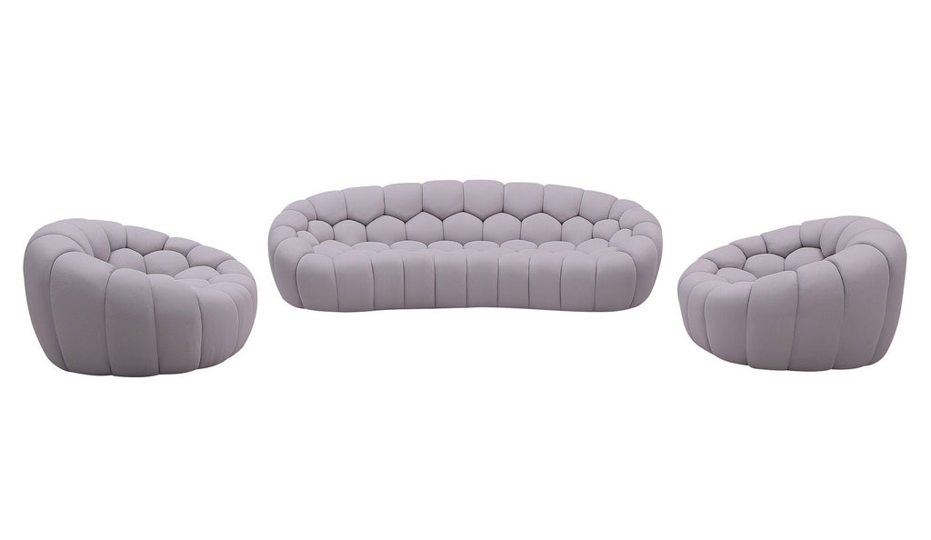 Presenting the "Fantasy" sofa, an exquisite creation that embodies the essence of modern design and artistic flair. This extraordinary sofa boasts a distinctive silhouette, featuring a rounded, bubble-like shape that envelops you in its embrace. The design showcases a seamless blend of bold curves and sleek lines, creating an eye-catching centerpiece for any contemporary living space.