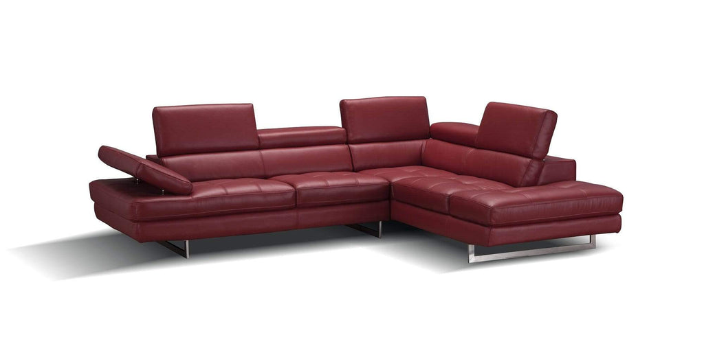 The A761 Sectional by J and M is class fully designed with a padded adjustable armrest that features a ratchet system for adjustability. The A761 sectional also features 6 adjustable head cushions and boxed back seat cushions. This beautiful sectional is constructed with thick Italian Leather, designed for flexibility and durability. Available in Black, White, Slate Grey, Coffee, Peanut, Caramel, Freesia, Red, Maroon & Blue.