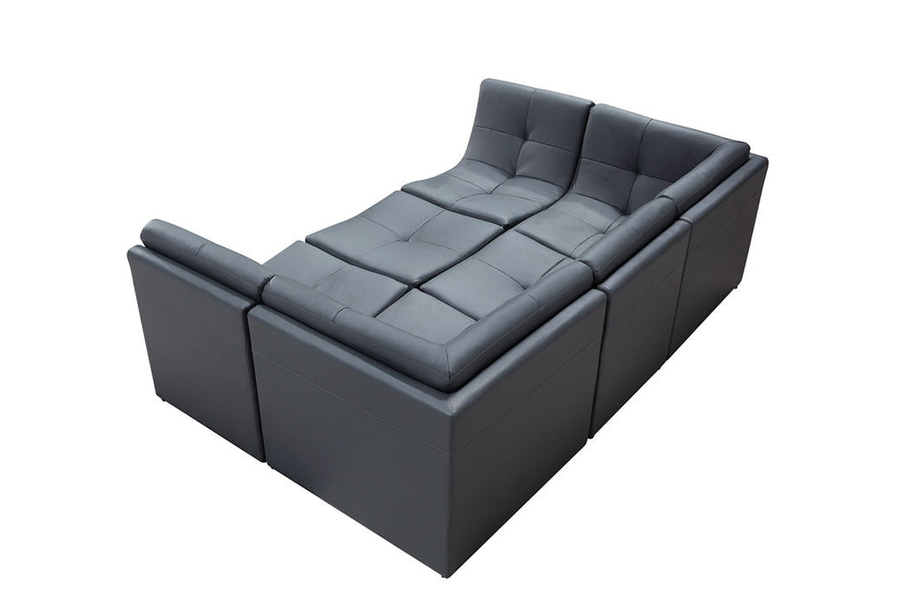 Modern Sofa Set Lego by J and M Furniture. We are proud to present the ultra-modern and innovational Sofa Set "Lego", the newest addition to our leather collection. Due to its flexibility and versatility, the Lego Collection is a perfect choice for any home, no matter the size and shape of the room. The Lego features finished sides & is fully modular. This set comes as a 6 piece combination that allows you to create your own customized combinations. From L-shapes of two- and three-seater sofas with ottoman that can be used as a chaise lounge. The Lego can be customized to fit your exact layout. Crafted in leather all around. The Lego is stocked in White Leather, Pumpkin Leather, and Grey Leather but can be specially ordered in many different colors.