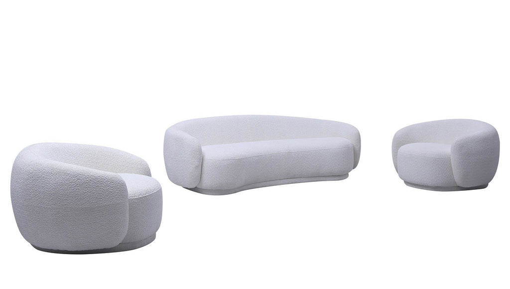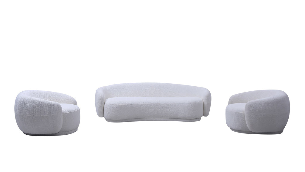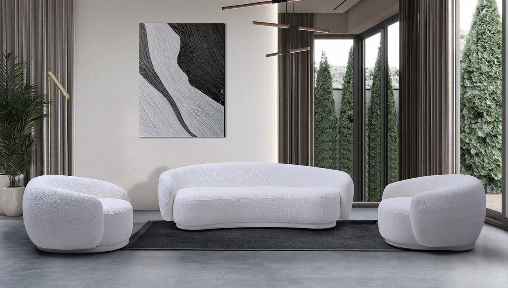 - Luxurious Off-White Boucle Upholstery: Soft, opulent fabric that enhances both style and comfort, adding a refined texture to your space.