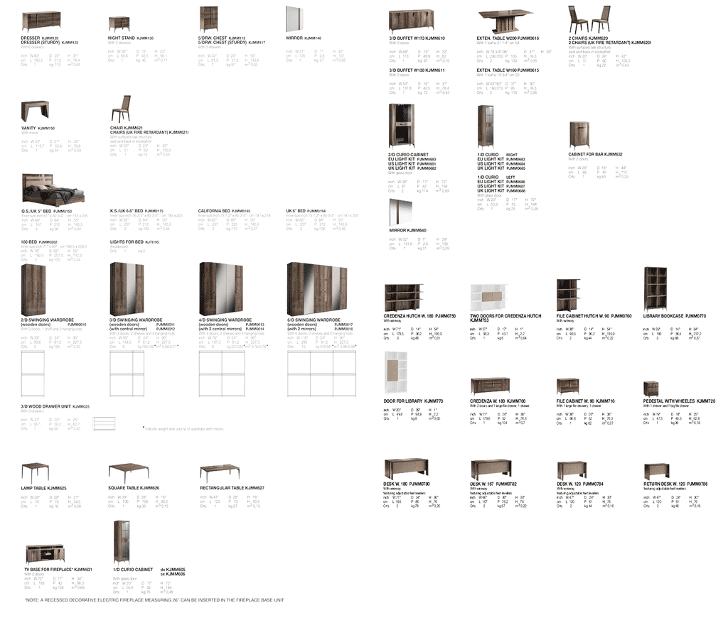 ALF Matera Bedroom Collection Surfaced Oak Finish With Grain Surfaced Top. Queen, King, And California King Options are Available. Bed, Nightstands, Dresser, Mirror, Chest, Wardrobes.
