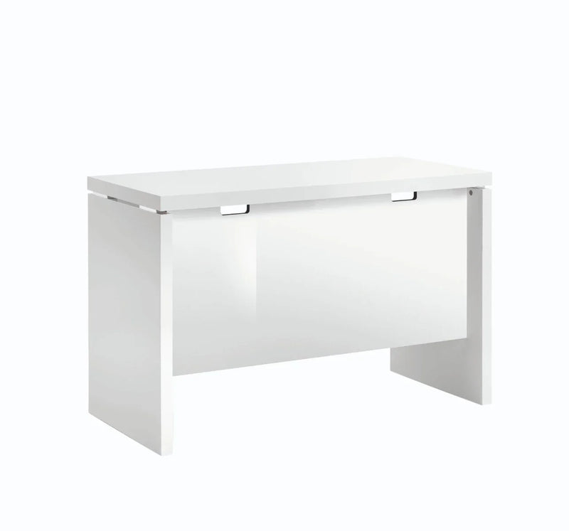 Furthermore, the largest desk (w 71") features wire-ways, making all your cords organized and hidden. The ALF Sedona White Gloss home office collection, featuring linear design, offers various clever solutions.